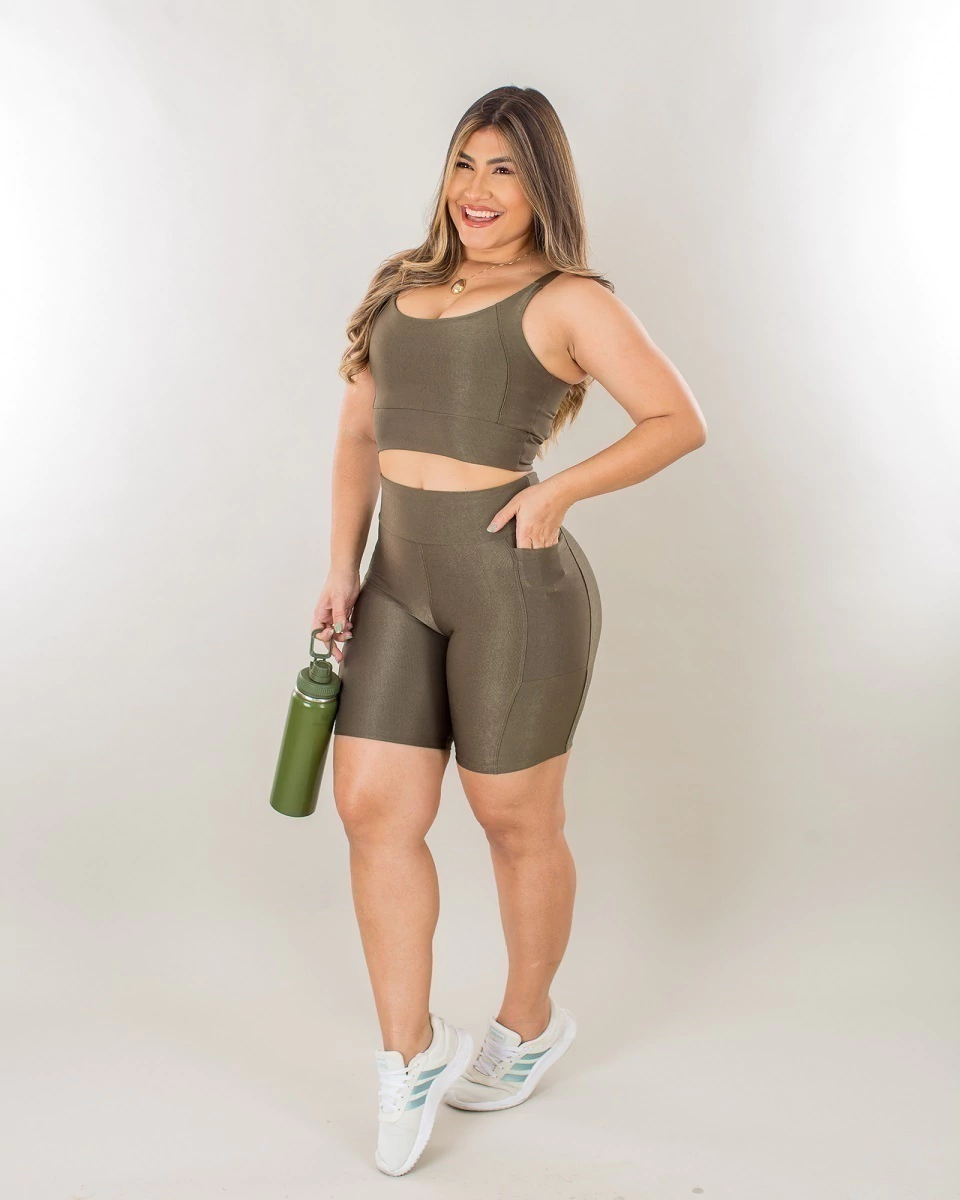 *Top e Bermuda Fitness Feminino: Qualidade, Conforto e Performance para Você!* Apresentamos o conjunto ideal para suas atividades físicas e momentos de lazer: o *Top e Bermuda Fitness* que combina *alta performance, **conforto excepcional* e um *caimento perfeito* no corpo. Desenvolvido para mulheres que buscam praticidade sem abrir mão do estilo, este conjunto é a escolha certa para quem valoriza qualidade e bem-estar. ### Destaques do Produto: *Top Fitness:* - *Tecido Técnico*: Leve, respirável e com tecnologia de secagem rápida, ideal para manter o conforto durante os treinos. - *Sustentação *: Alças e estrutura que oferece suporte adequado para diferentes tipos de atividade. - *Design Moderno*: Corte que valoriza a silhueta, com detalhes que unem funcionalidade e estilo. *Bermuda Fitness:* - *Caimento Impecável*: Elástica e com cós largo efeito lipo para maior conforto e ajuste perfeito ao corpo. - *Liberdade de Movimento*: Tecido elástico e macio que acompanha cada movimento sem restrições. - *Praticidade*: Bolsos laterais para guardar pequenos itens, como chaves ou celular. ### Benefícios do Conjunto: - *Qualidade Premium*: Tecidos duráveis, costuras reforçadas e acabamento de alto padrão. - *Versatilidade*: Perfeito para academia, corridas, yoga ou até mesmo para o dia a dia. - *Variedade de Cores e Tamanhos*: Opções que atendem a todos os gostos e biotipos. *Por que escolher este conjunto?* - *Conforto que inspira*: Feito para você se sentir bem durante e após o treino. - *Estilo que motiva*: Design moderno e cores vibrantes para você arrasar em qualquer ocasião. - *Durabilidade garantida*: Produtos que resistem aos treinos mais intensos. *Invista no seu conforto e performance com o Top e Bermuda Fitness que vão revolucionar seus treinos!* ??? *Garanta já o seu conjunto e sinta a diferença!* ???????? Guia de tamanhos P - veste do 36 ao 38M - veste do 38 ao 40G- veste do 42 ao 44GG - veste do 44 ao 46Tamanho P = busto 84 a 90 cm Cintura 68 a 75 cm quadril 98 a 103 cmTamanho M = busto 91 a 97 cm Cintura 76 a 83 cm quadril 104 a 109 cmTamanho G = busto 98 a 104 cm Cintura 84 a 91 cm quadril 110 a 115 cmTamanho GG= busto 105 a 111 cm Cintura 92 a 99 cm quadril 116 a 120 cm