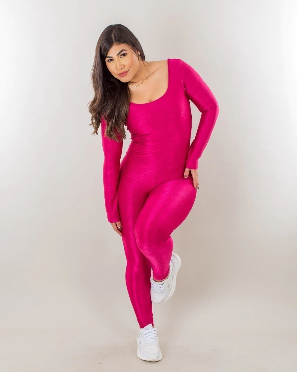 - *Tecido:* O macacão é confeccionado em Power, um material leve, respirável e elástico, que oferece excelente suporte e liberdade de movimento. O tecido é conhecido por sua durabilidade e capacidade de manter a forma, mesmo após intensas atividades físicas.