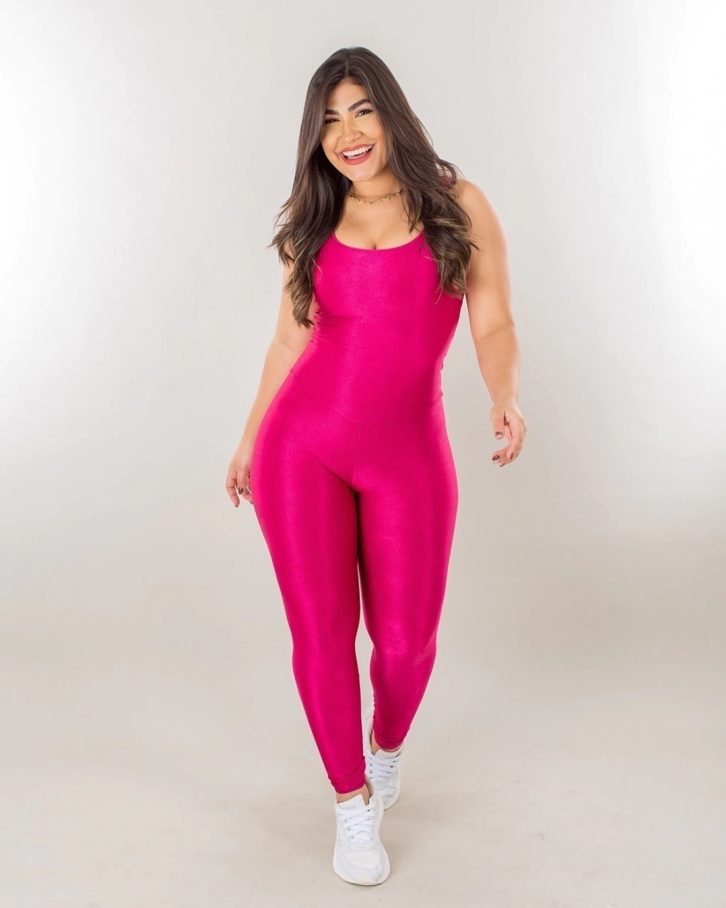 - *Estampa e Cor:* O macacão pode vir em diversas cores e estampas, desde tons sólidos e clássicos até padrões modernos e vibrantes, permitindo que a peça seja usada tanto para treinos quanto para passeios casuais.