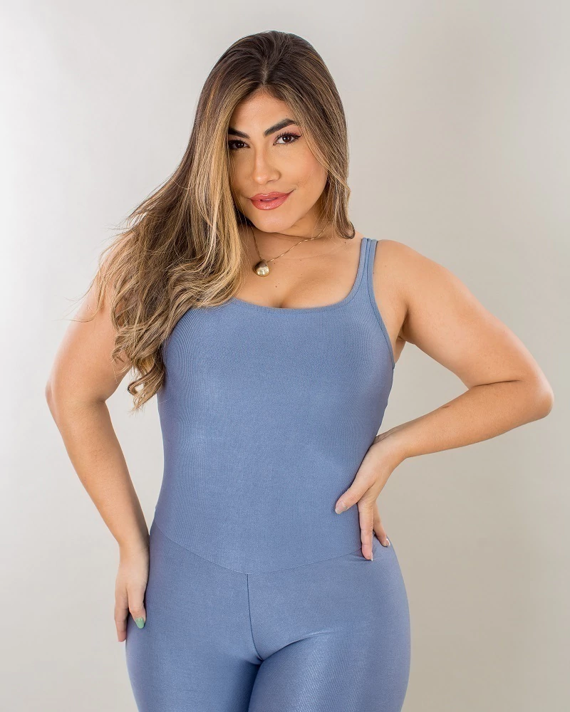 Um macacão fitness feminino, feito no tecido Power, pode ser descrito como uma peça versátil, moderna e altamente funcional, ideal para treinos e passeios. Aqui está uma descrição detalhada: