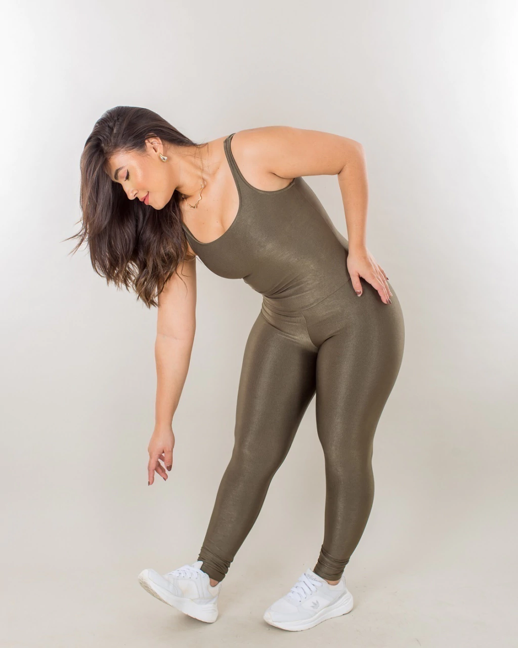 - *Estampa e Cor:* O macacão pode vir em diversas cores e estampas, desde tons sólidos e clássicos até padrões modernos e vibrantes, permitindo que a peça seja usada tanto para treinos quanto para passeios casuais.