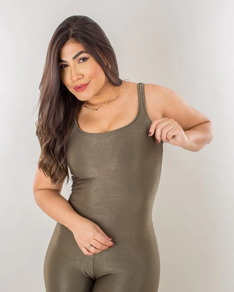 Um macacão fitness feminino, feito no tecido Power, pode ser descrito como uma peça versátil, moderna e altamente funcional, ideal para treinos e passeios. Aqui está uma descrição detalhada: