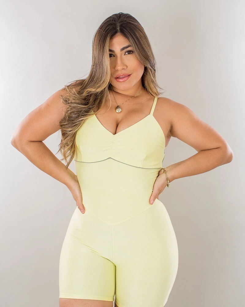 - *Tecido:* O macaquinho é confeccionado em Power, um material leve, respirável e elástico, que oferece excelente suporte e liberdade de movimento. O tecido é conhecido por sua durabilidade e capacidade de manter a forma, mesmo após intensas atividades físicas.