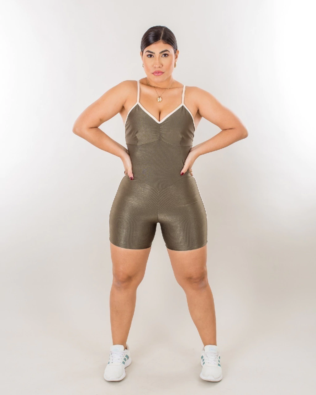 Um macaquinho fitness feminino, feito no tecido Power, pode ser descrito como uma peça versátil, moderna e altamente funcional, ideal para treinos e passeios. Aqui está uma descrição detalhada: